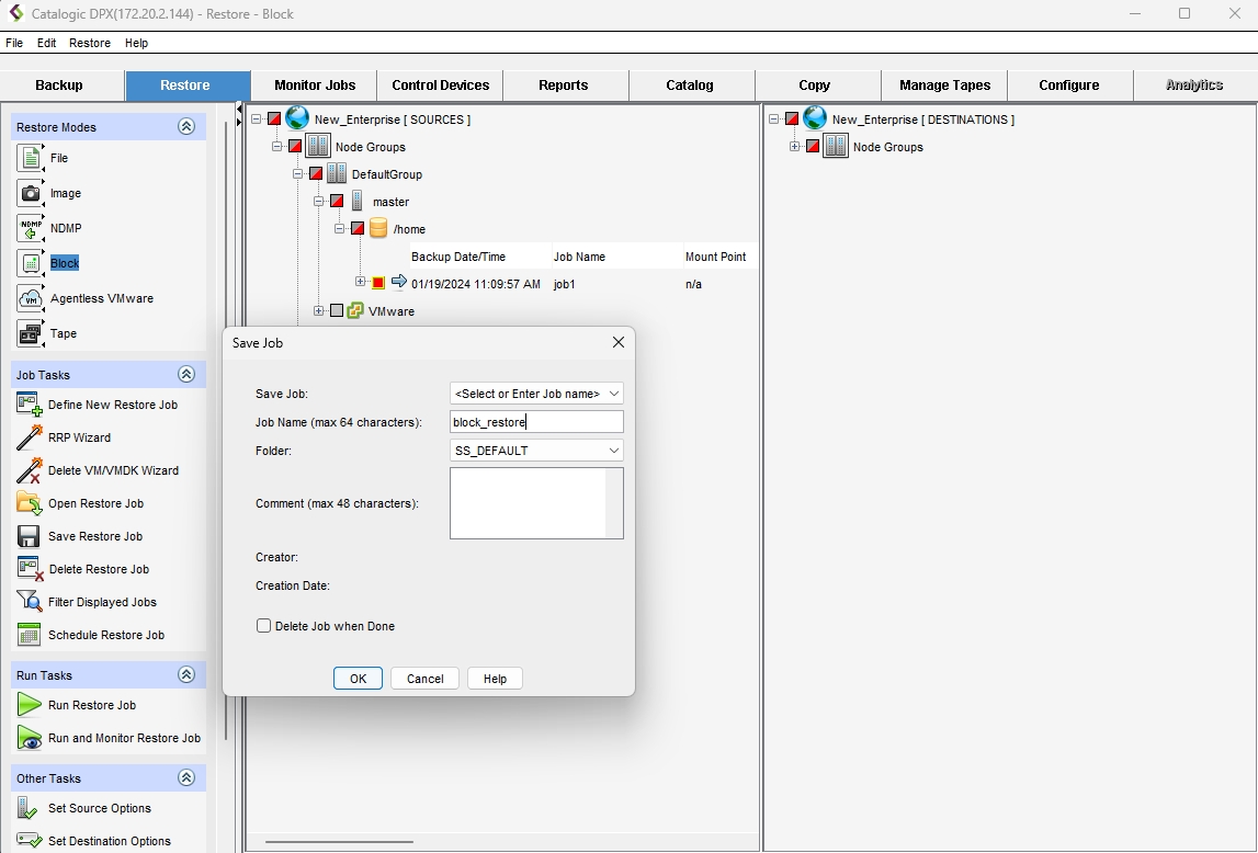 Creating a Block Restore Job