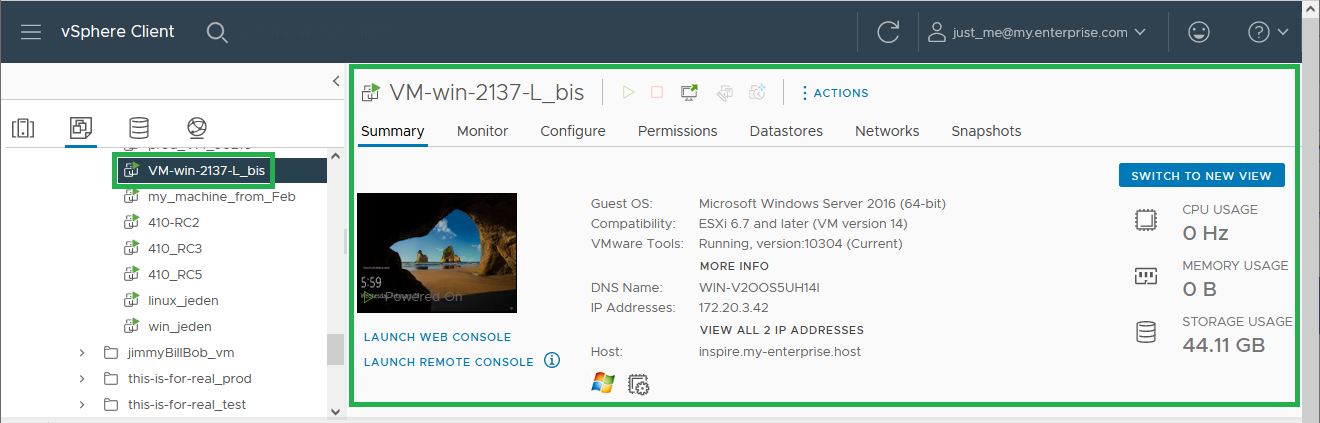 Click Yes to run the job immediately or No if you want to run it later from the Job Manager. After a successful job run, the restored virtual machine will be visible in the vCenter: