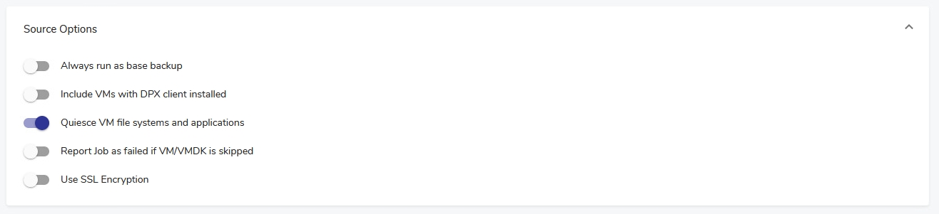 In the web interface, backup source job options are defined in the Advanced Options section. To access them, do the following: