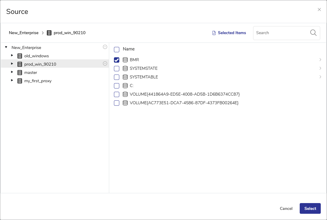 In the Select Source screen, select BMR. Click Next.