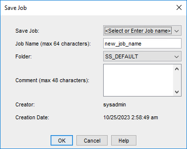 Specify the Job Name (this field may contain up to 16 characters). Add an optional, brief description (this field may contain up to 48 characters).