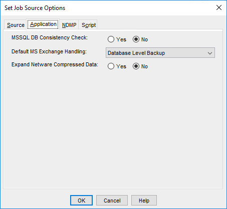 The Set Job Source Options dialog allows you to set options related to backup sources. This section provides an explanation of each field in the dialog and the available choices.