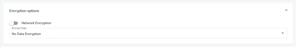 Go to the Advanced Options section at the bottom (scroll down if necessary) and expand it. Click the Encryption options header to expand it. Each field and the available choices are explained below.