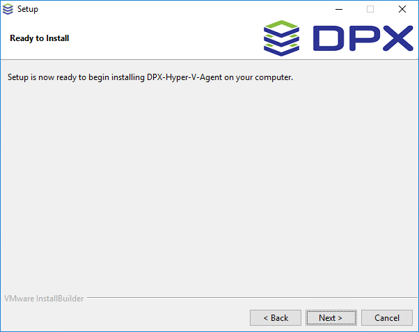 The wizard is now ready to install the DPX Hyper-V Agent on your computer. Click Next to begin the installation.