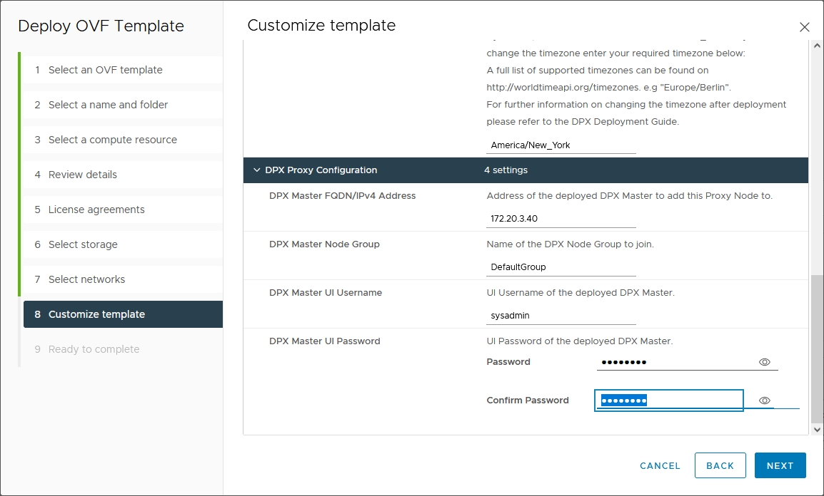 To deploy DPX Proxy Server virtual appliance for VMware, take the following steps.