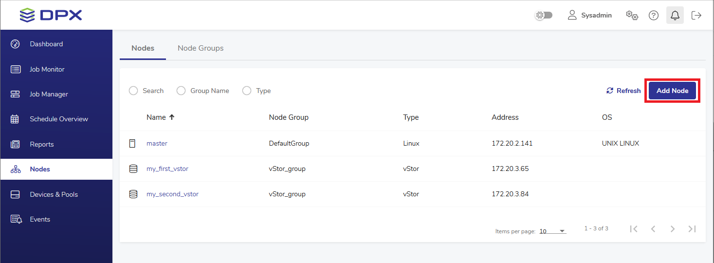 Click the Add Node button in the upper right corner to open the Add Node dialog.