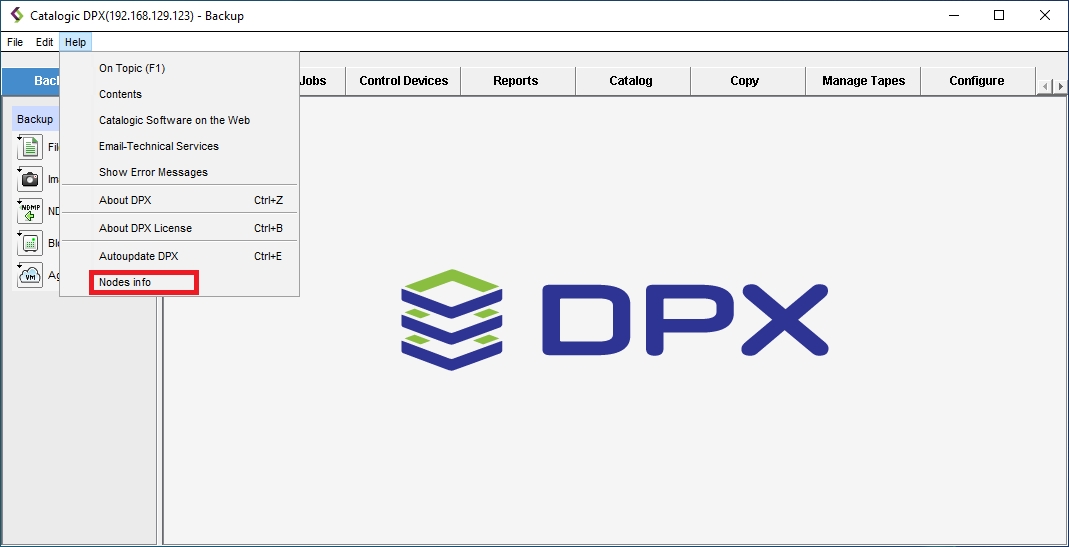 Additional nodes should exist in the Enterprise by adding them to a Node Group. If no other nodes exist in your Enterprise, only the Catalogic DPX Master Server node will be displayed as master in the DefaultGroup.