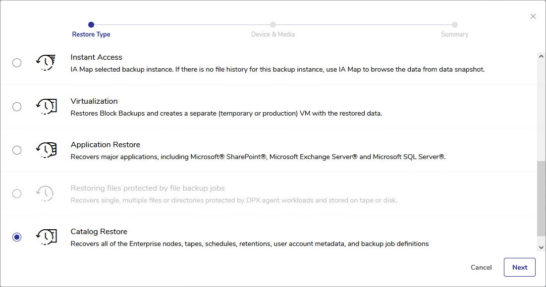 Select Catalog Restore and click Next.