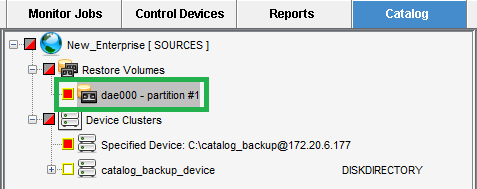 The necessary information can be found in the relevant Catalog Backup report. For more information, see Creating a Catalog Backup.Click OK. The Restore Volume will be added to the Sources tree.\