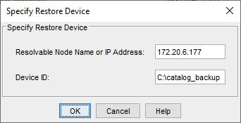 Specify the Restore Device – the device where the Catalog Backup is stored. Option 1: