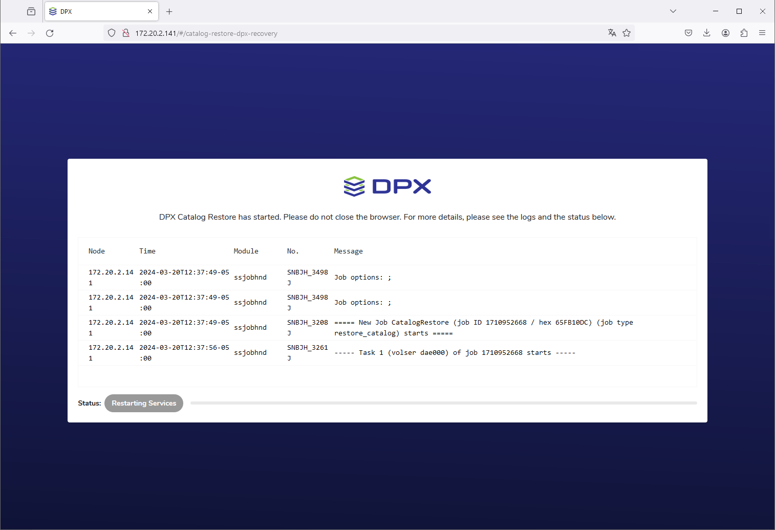 Upon successful Catalog Restore, the final screen will be shown.