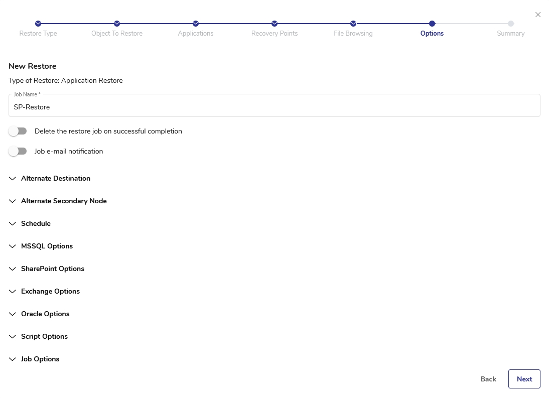 This option lets you configure how the restore job handles the SharePoint web application. You can choose from the following options: