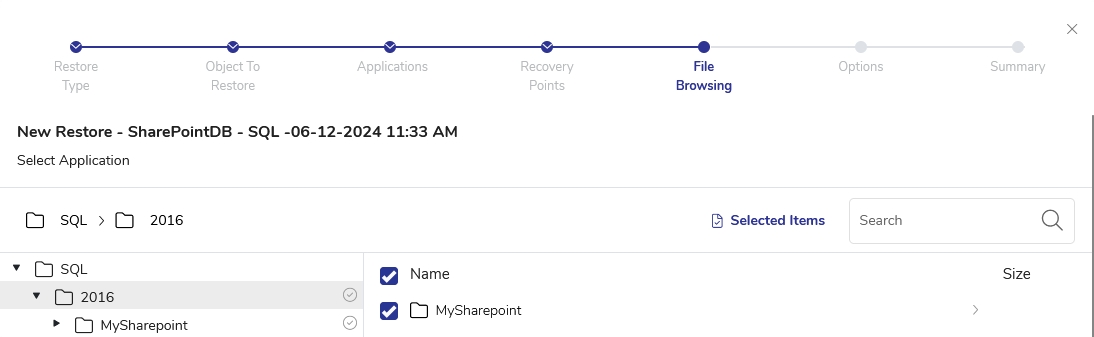 This restore mode allows the restoration of Microsoft SharePoint Server data from backups created with DPX. The process is designed to be flexible, enabling the recovery of entire SharePoint farms, individual site collections, or specific items to their original location or a new one.