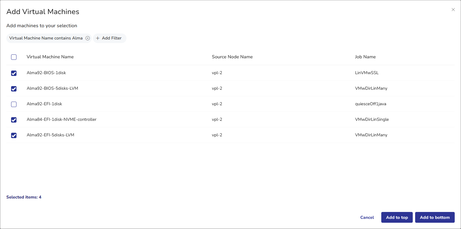 Click Add to bottom to place the newly selected VMs after those previously added.