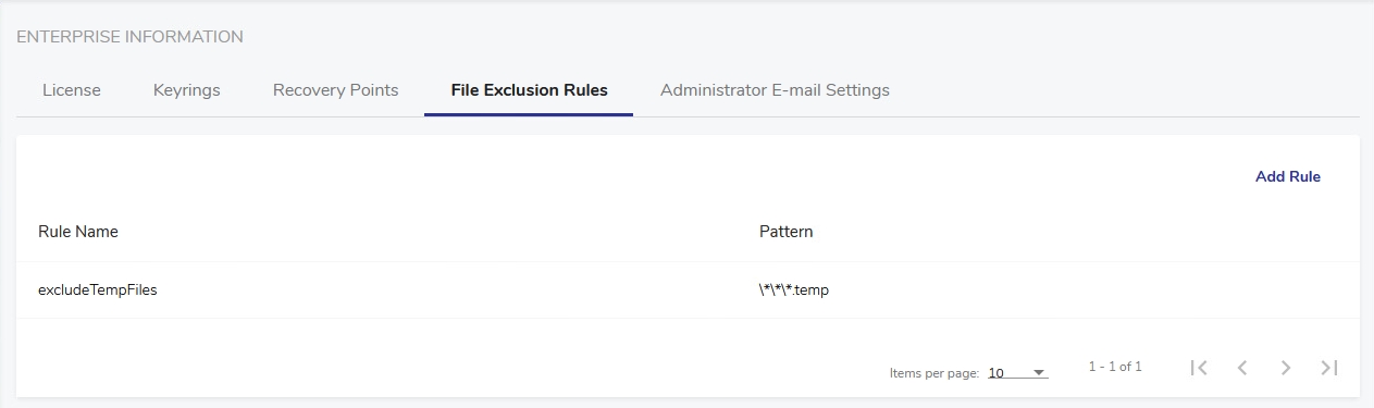 You can control the view by ordering items by Rule Name or Pattern, ascending or descending. Note also the Items per page value which can be useful when managing the display.