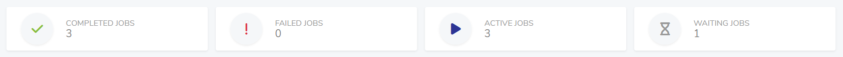 This section consists of four widgets indicating, respectively, the number of completed, failed, active and waiting jobs on the current date. The widgets are clickable and will take you to the Job Monitor view with appropriate filters applied.