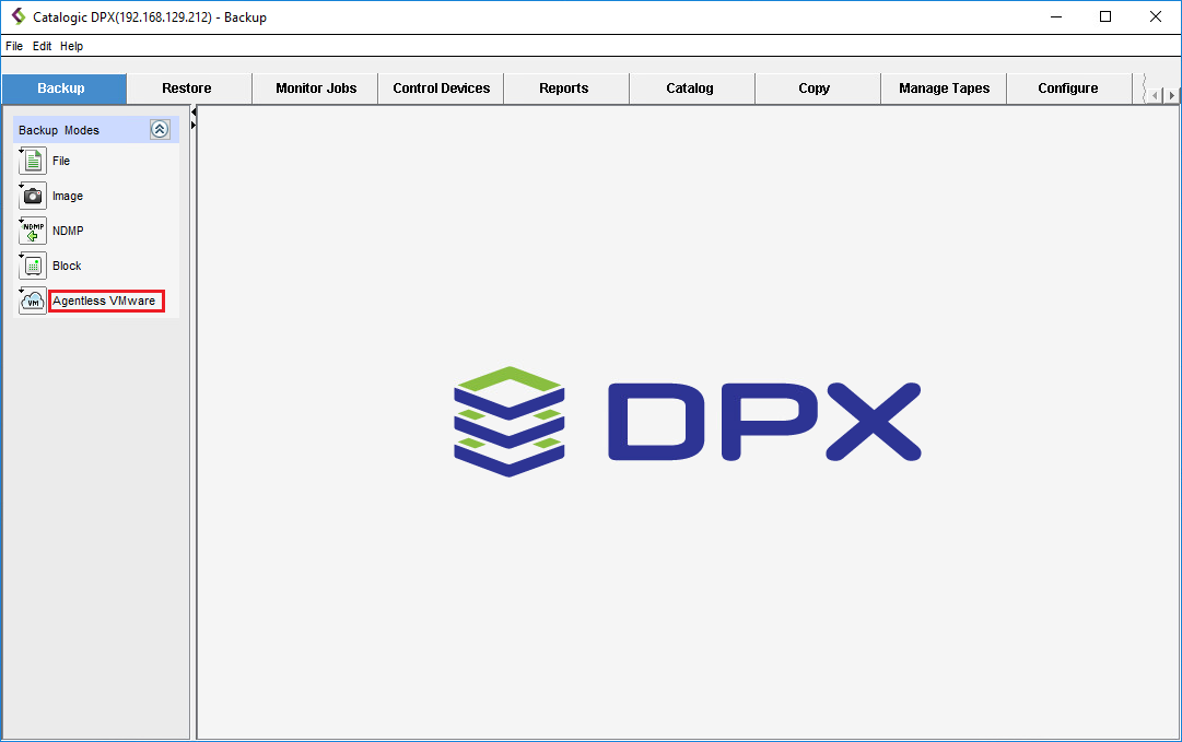 In the main desktop interface window, go to the Backup tab, and from the Backup Modes section in the task panel, choose Agentless VMware.