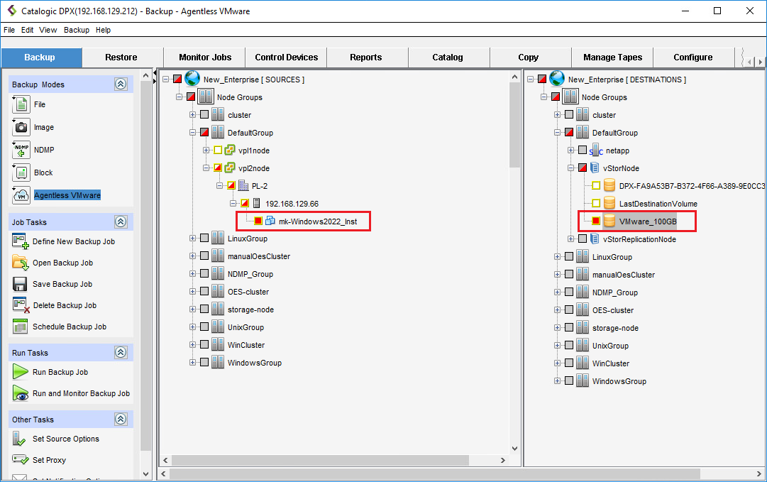 Tip. You may change the Source tree display mode. Go to the View menu and select either Agentless VMware VM View or Agentless VMware Host View.