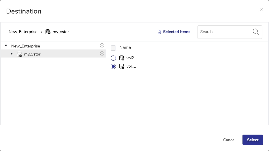 Important. When selecting a vStor volume, ensure it has an NFS share, so that DPX can access it. For more information, see Creating a new share using the vStor Web Interface in vStor 4.13 Documentation.