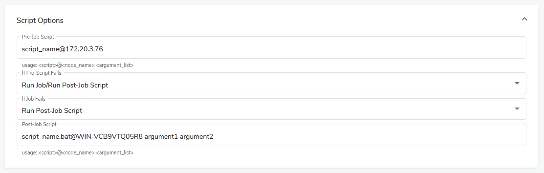 See also. For detailed information about pre- and post-job scripts, including all valid definitions, see Pre-Scripts and Post-Scripts.