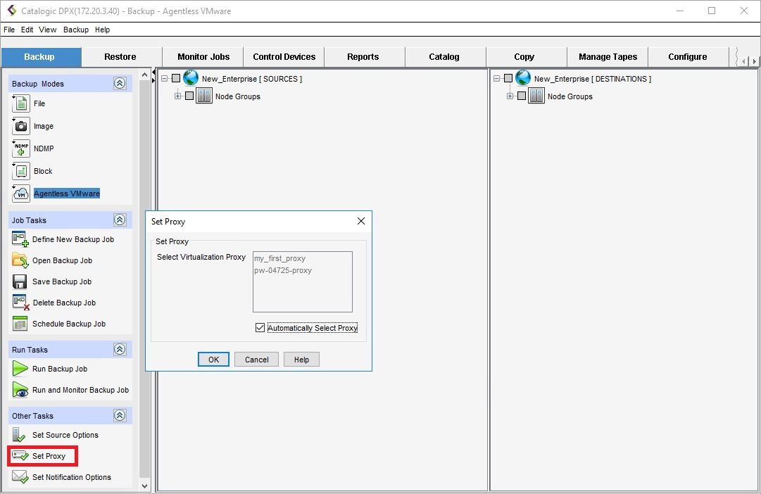 On the backup Task Panel, under Other Tasks, click Set Proxy. The Set Proxy dialog appears.\