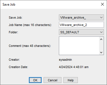 A separate archive backup job must be created for the archive job to be run. For VMware Agentless backup, Archive jobs are created by scheduling their instances from within the VMware backup job creation process.