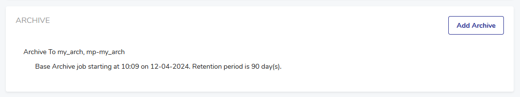 The added Archive schedule will be shown in the Schedule area. To add another schedule, click Add Another Schedule.