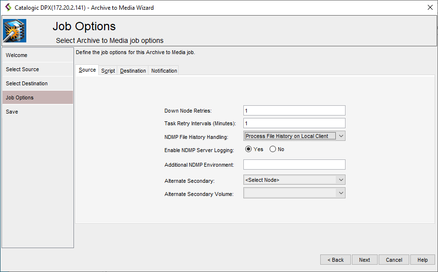 All NDMP server log messages will be routed to the master server’s job log file. Yes is the default.