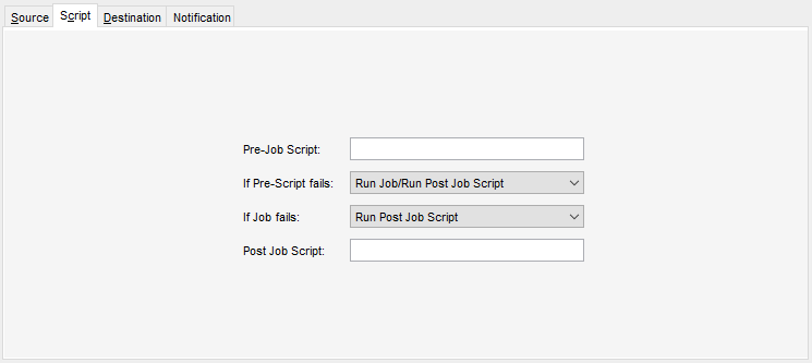 The action be taken if the Pre-Job Script fails to complete successfully: