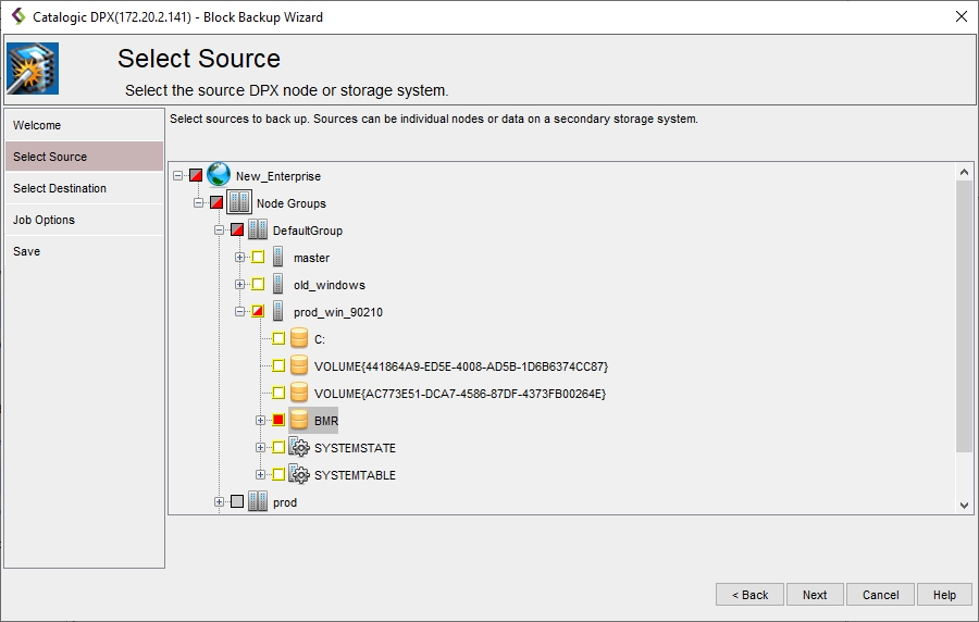 Creating a BMR Backup Job