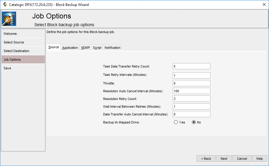 Specify Advanced Options. For details, see Job Options for Block Backup.
