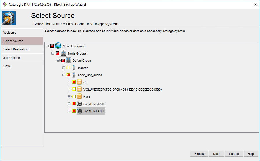 In the Select Source step, choose the volumes you want to include in the backup. Click Next.