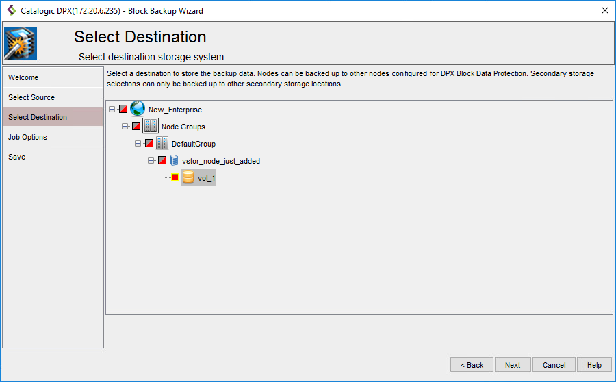 In the Select Destination step, choose the destination for the backup job. Click Next.