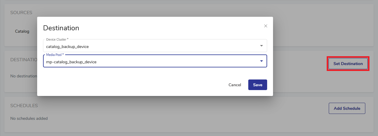 Note. It is recommended to use a dedicated device cluster and media pool so that you can quickly locate your latest Catalog Backup.