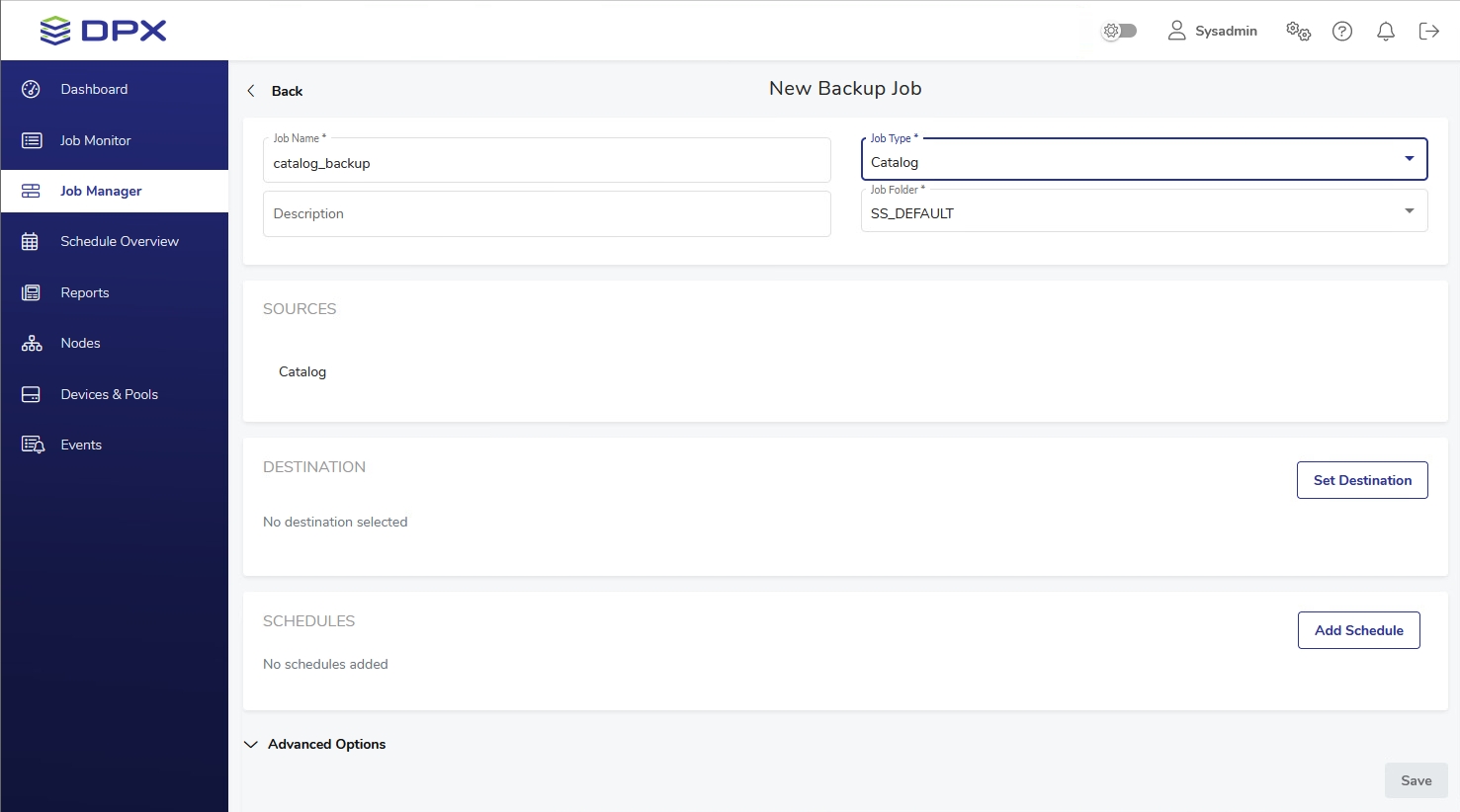 Set Advanced Options as desired. For details, see Job Options for Catalog Backup Job.