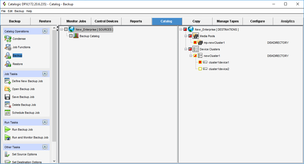 Note. Creating a Catalog backup requires that there is at least one device and at least one media added to your DPX.