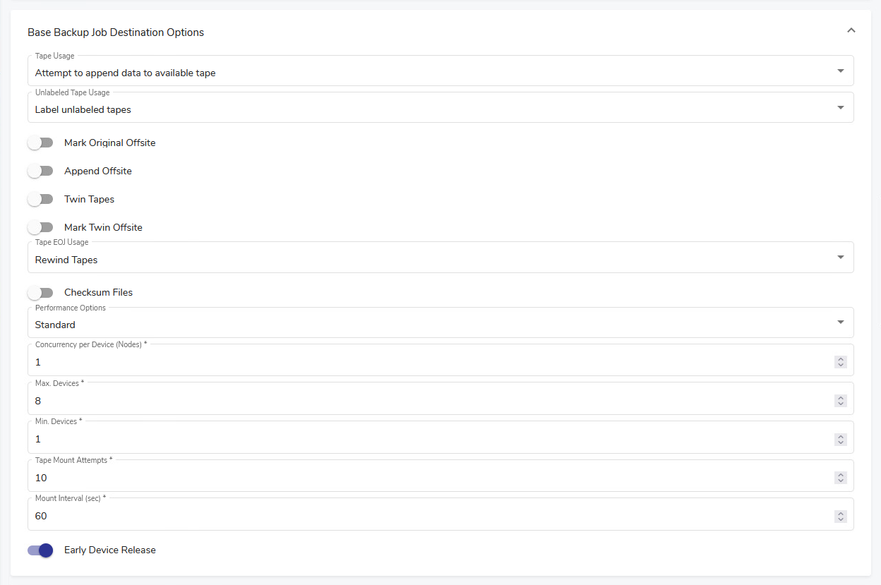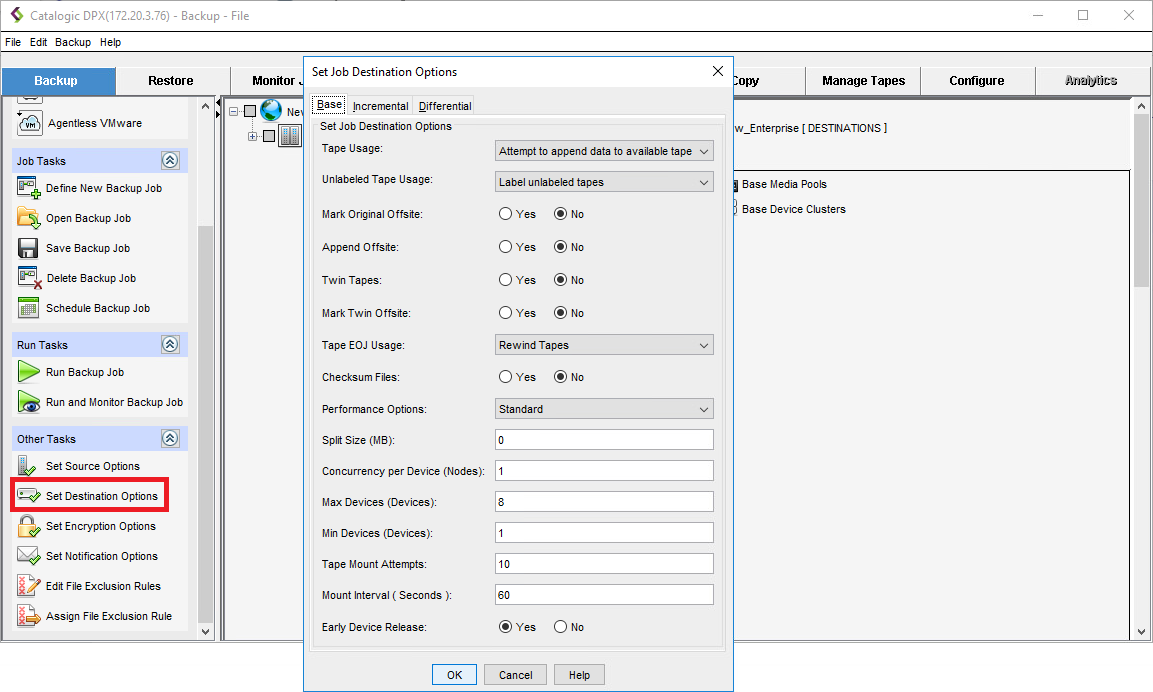 Backup Job Destination Options