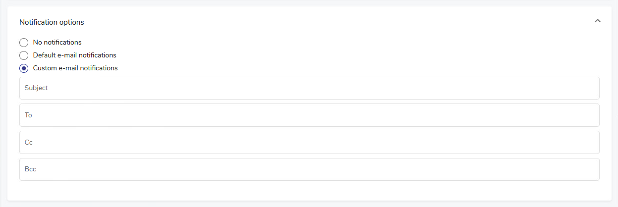 If the Custom e-mail notifications option is selected, Four additional entry fields appear: