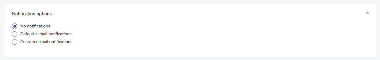 Go to the Advanced Options section at the bottom (scroll down if necessary) and expand it. Click the Notification options header to expand it. Each field and the available choices are explained below.