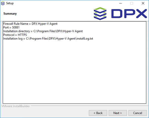 C:\Program Files\DPX\Hyper-V Agent. Click Next.