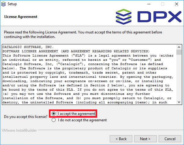 In the License Agreement step, read the entire License Agreement carefully. You must accept the terms to continue. Click Next.