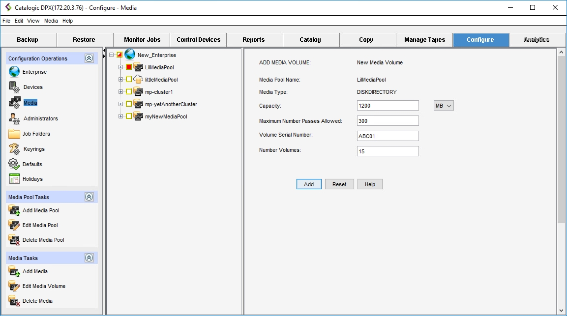 Complete the active fields in the Add Media Volume dialog: