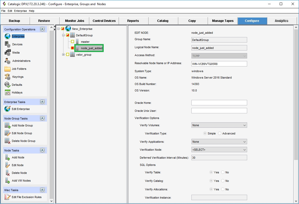 Select Add. The node is now added. You can see it in your Enterprise tree, and its parameters are visible in the EDIT NODE pane.