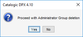 The Proceed with administrator group deletion message box appears.