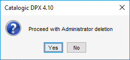 The Proceed with administrator deletion message box appears.