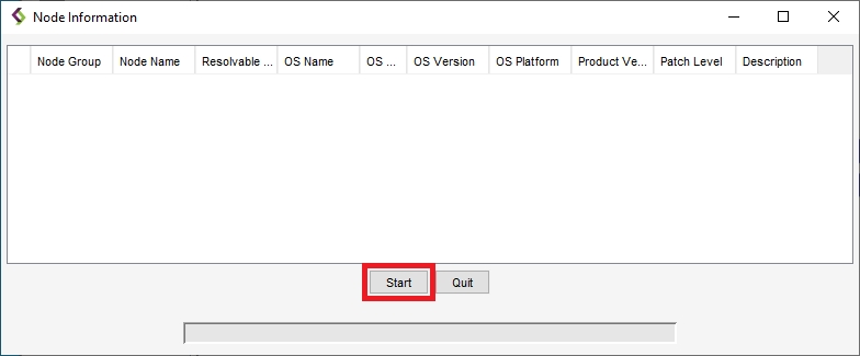 Run a Nodes Info scan to display the status of the nodes in the Enterprise. The display lists all nodes in the Enterprise, identified by node group, node name, and resolvable name. The operating system name, architecture, platform, and description are also displayed for each node. Importantly, the display indicates the product version and patch level running on the node. The node icon on the left is filled with green if the node is at the current release and patch level. The node icon is filled with red if the node is not at the current level or if information could not be obtained.