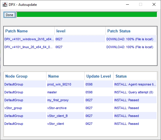 The Catalogic DPX Master Server automatically tests if it can update all nodes in its Enterprise. If the test succeeds, you will see another Autoupdate dialog.