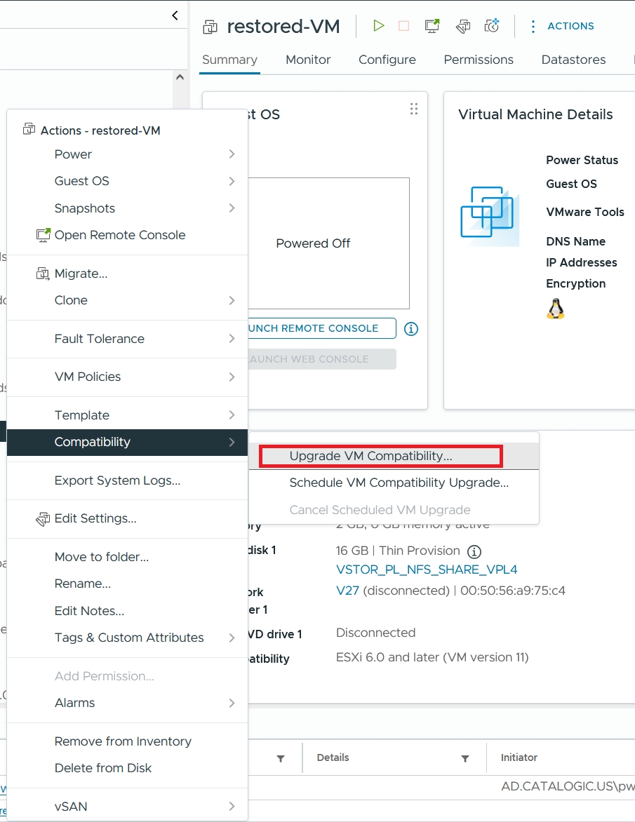 Another workaround is to restore your virtual machine with full or instant VM restore and change the machine’s settings in the vCenter.