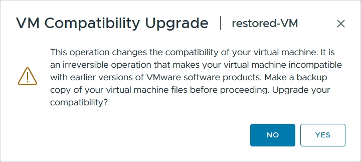 Confirm your decision in the VM Compatibility Upgrade dialog.