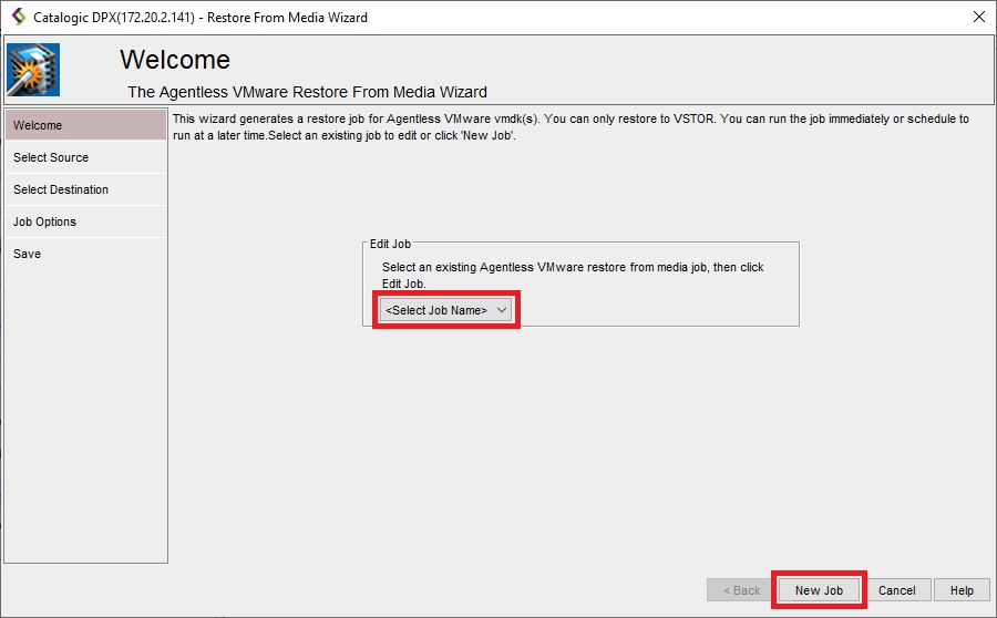 Click on New Job to create a new job or select an existing job from the dropdown list to modify it.\